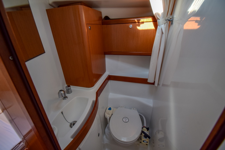 | Inside | Fäkalientank, Heizung, Inverter 12V/220V, Klimaanlage (Landstrom), Kühlschrank, Pantryausstattung, Radio, USB Steckdosen in den Kabinen, Ventilatoren in Salon und Kabinen |