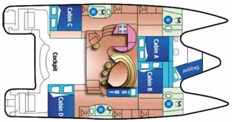 Eiswürfelmaschine, Gasherd mit Backofen, Gefrierschrank, Generator, Geschirrspüler, Heizung, Inverter 12V/220V, Kaffeemaschine, Klimaanlage (ohne Landstrombedarf), Kühlschrank, Pantryausstattung, Radio mit CD und MP3, Watermaker, WC (elektr.) |
