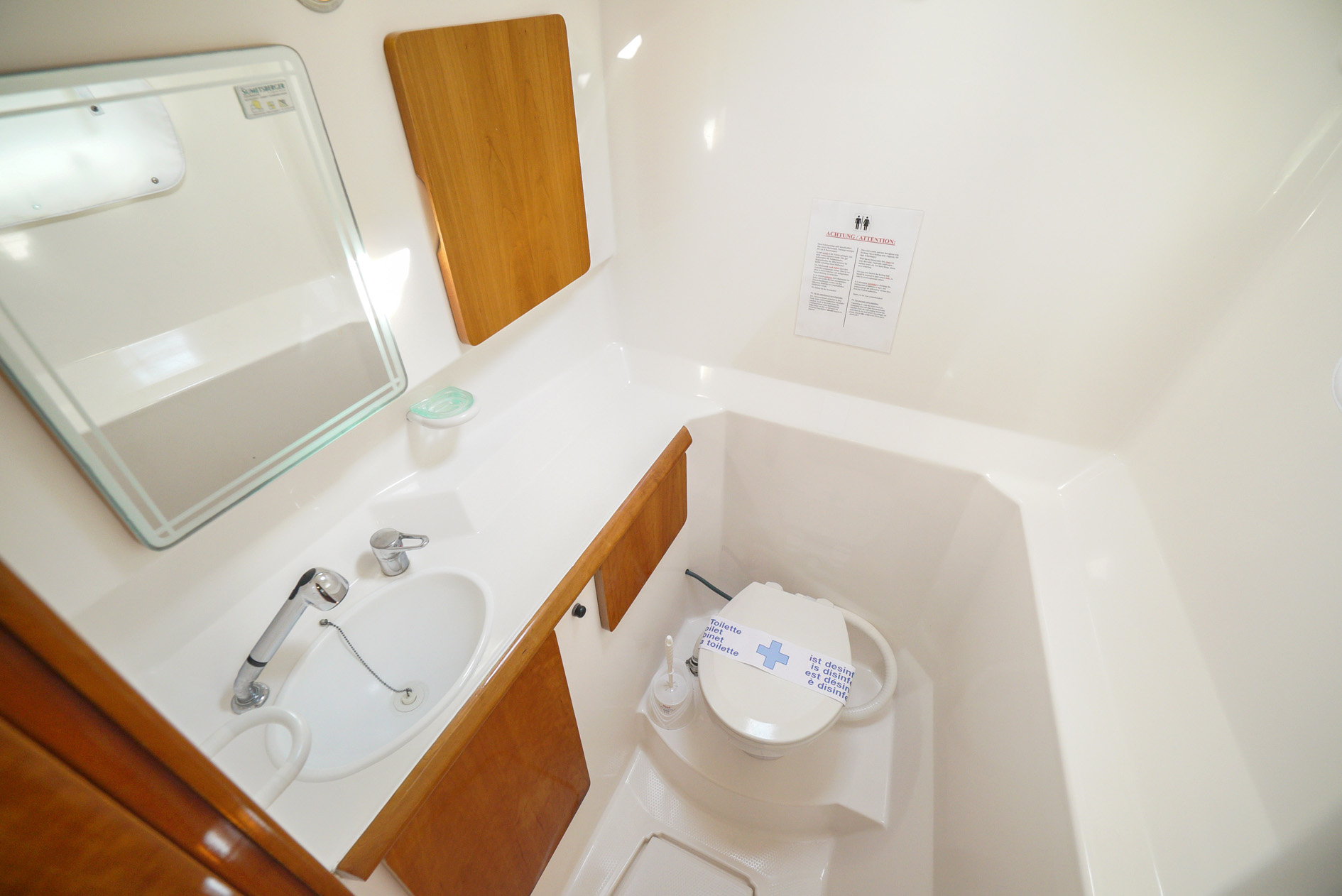 Badeleiter, Biminitop, Bolzenschneider, Cockpitdusche, Cockpitlautsprecher, Cockpitpolster, Cockpittisch, elektr. Ankerwinsch, Gangway, Solaranlage, Sprayhood |