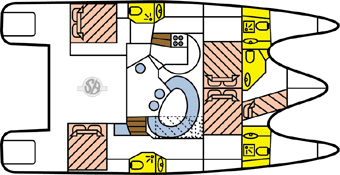 | Outside | Anker mit Kette, Außendusche, Badeleiter, Biminitop, Cockpittisch, elektr. Ankerwinsch, Gangway, Sonnensegel, Treibanker, Windex |