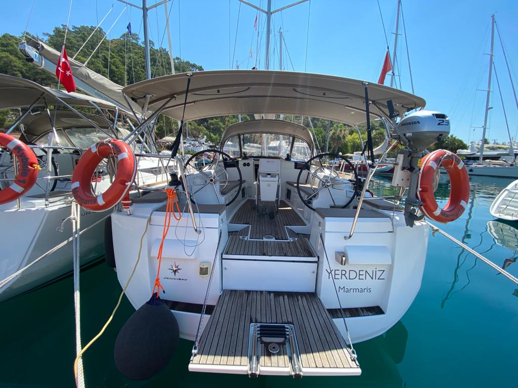 | Outside | 220 V Landstromkabel mit Ladegerät, Badeplattform, Biminitop, Bootshaken, Cockpitlautsprecher, Cockpitpolster, Cockpittisch, elektr. Ankerwinsch, Fender, Gangway, Kunststoff-Eimer (Pütz), Sprayhood, Teak im Cockpit, Vorhängeschloss, Wasserschlauch, Windex |