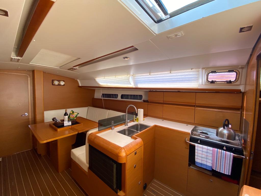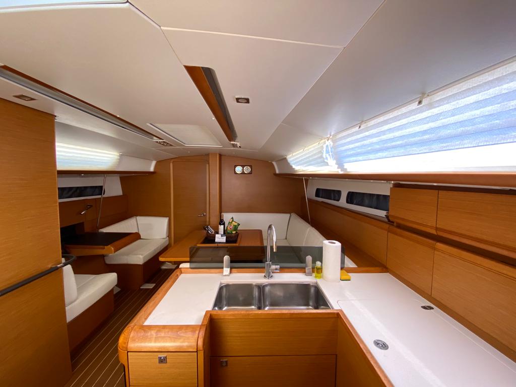 | Navigation | Barometer, Fernglas, GPS mit Kartenplotter im Cockpit, Hafenhandbücher, Kompass, Navigationsbesteck, Seekarten, Sumlog und Echolot |