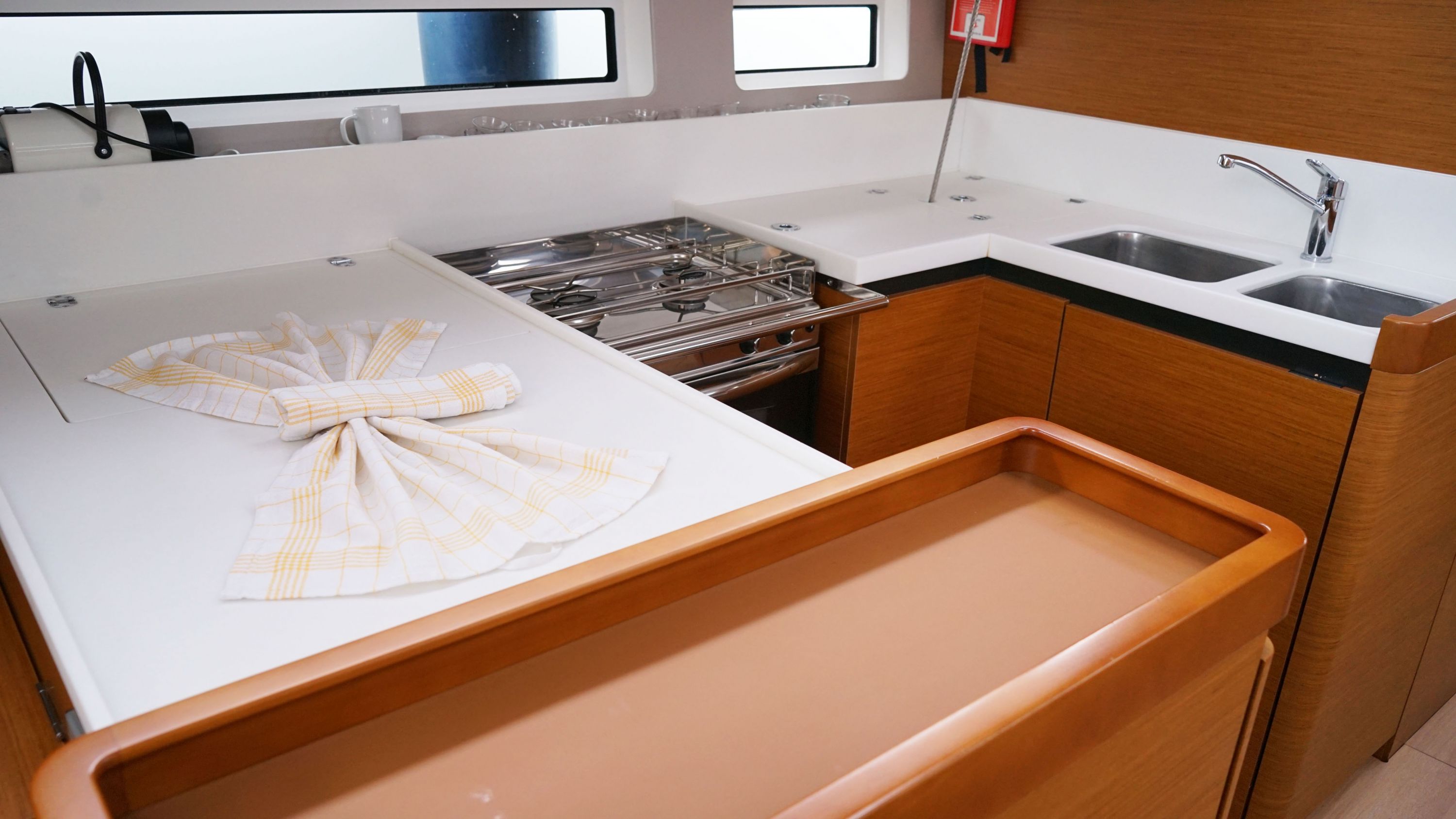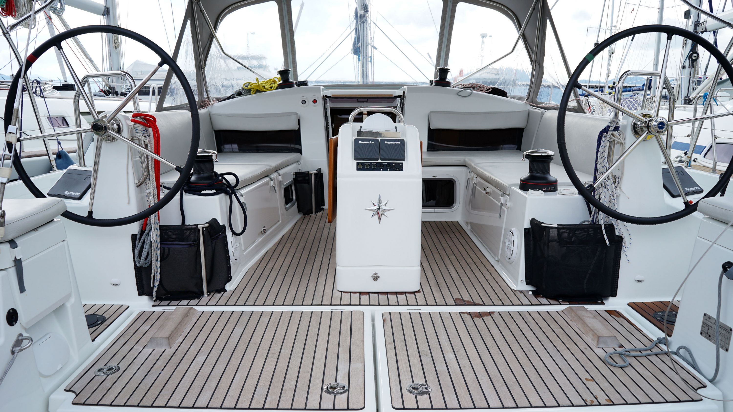 | Safety | Automatikwesten, Autopilot, Bilgepumpe, Bootsmannstuhl, Bordapotheke, Bordwerkzeug, Bugstrahlruder, elektr. Wetterstation, Feuerlöscher, Lifebelts, Löschdecke, Nebelhorn, Notpinne, Notsignale, Rettungsbojenlicht, Rettungsinsel, UKW-Funk |