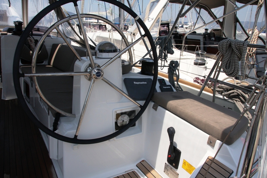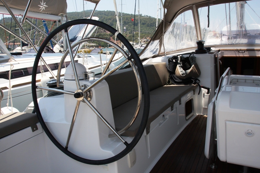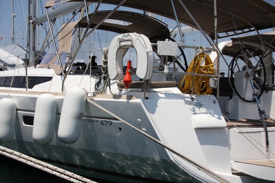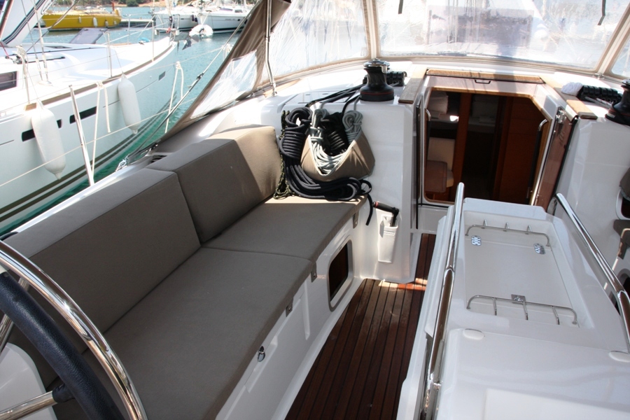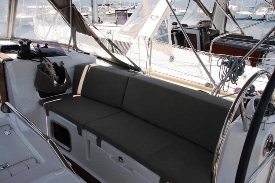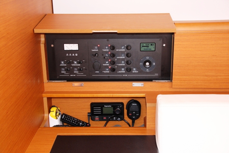 | Outside | 220 V-Landanschluss, Biminitop, Bolzenschneider, Bootshaken, Cockpitdusche, Cockpitlautsprecher, Cockpitleuchte, Cockpitpolster, Cockpittisch, elektr. Ankerwinsch, Fender, Gangway, Solaranlage, Sprayhood, Windex, Winschen |