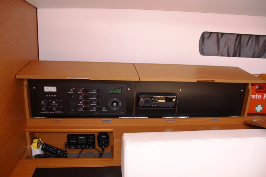 | Safety | Ankerball, Autopilot, Bootsmannstuhl, Bordapotheke, Bordwerkzeug, Bugstrahlruder, Feststoffschwimmwesten, Feuerlöscher, Leuchtboje, Lifebelts, Löschdecke, Nebelhorn, Notsignale, Radarreflektor, Rettungsinsel, Rettungsring, UKW-Funk, Zweitanker |