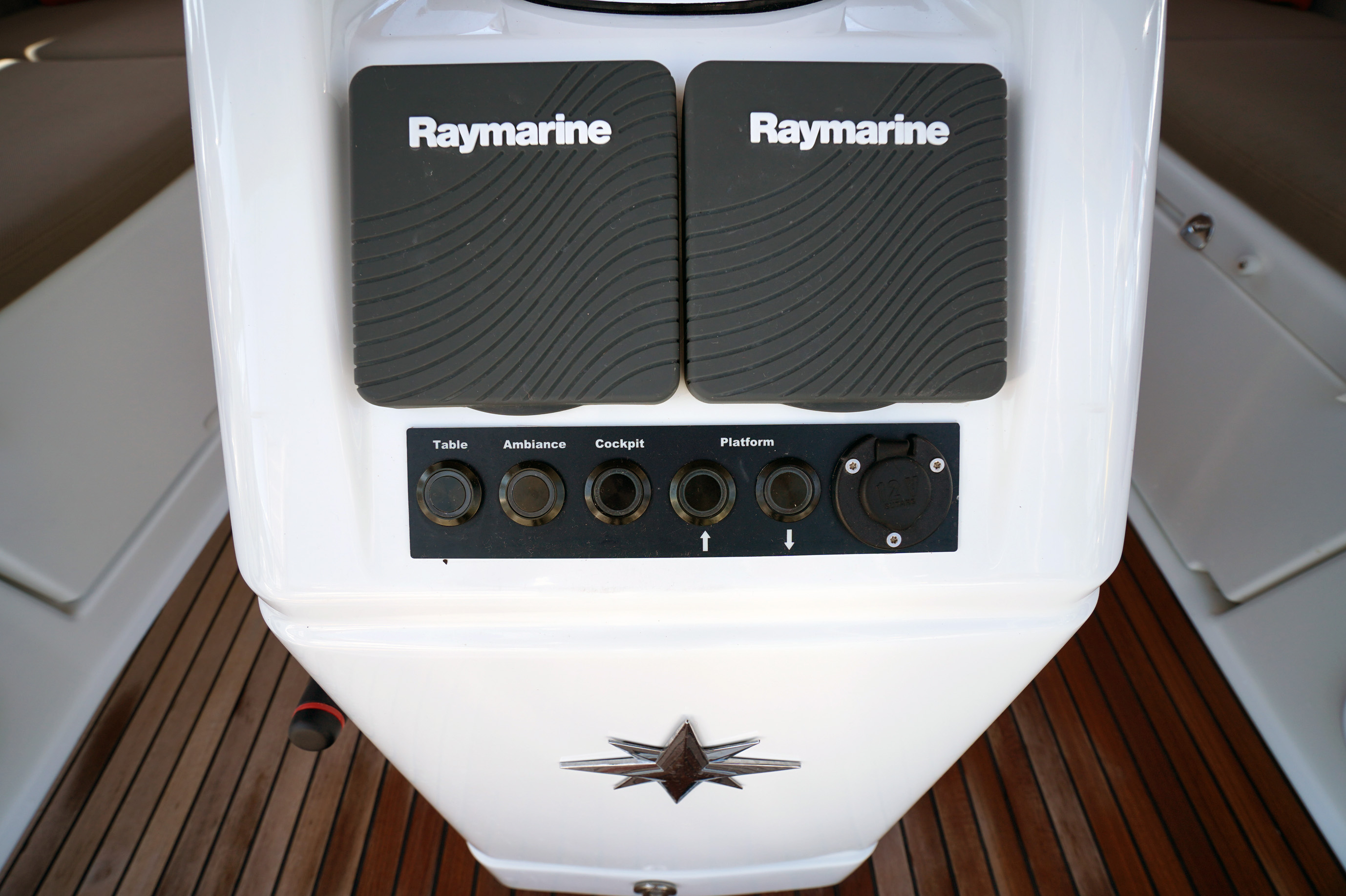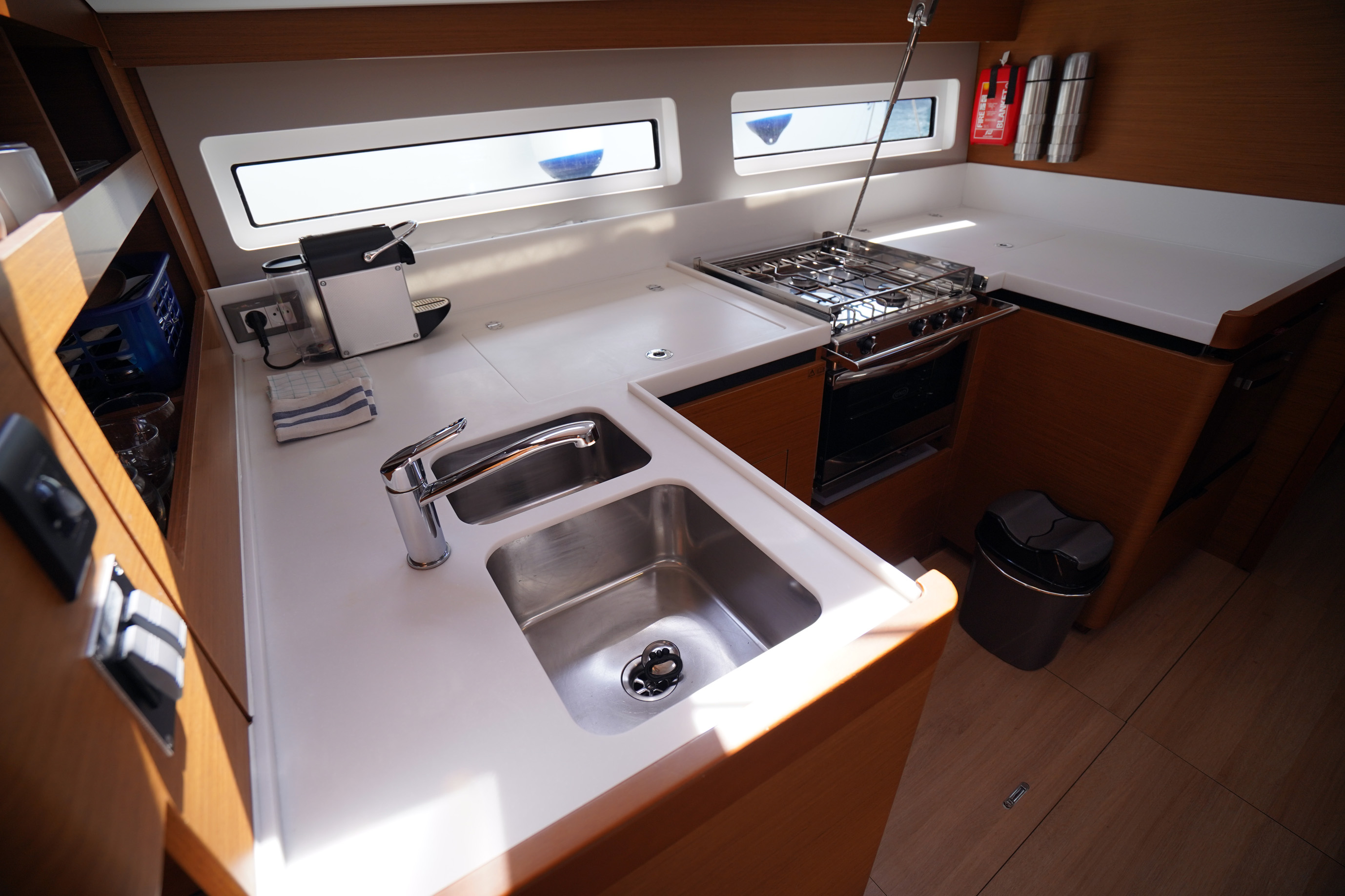 | Outside | Badeleiter, Biminitop, Bolzenschneider, Cockpitdusche, Cockpitlautsprecher, Cockpitpolster, Cockpittisch, elektr. Ankerwinsch, elektr. Winsch, Gangway, Lifeline System, Solaranlage, Sprayhood |