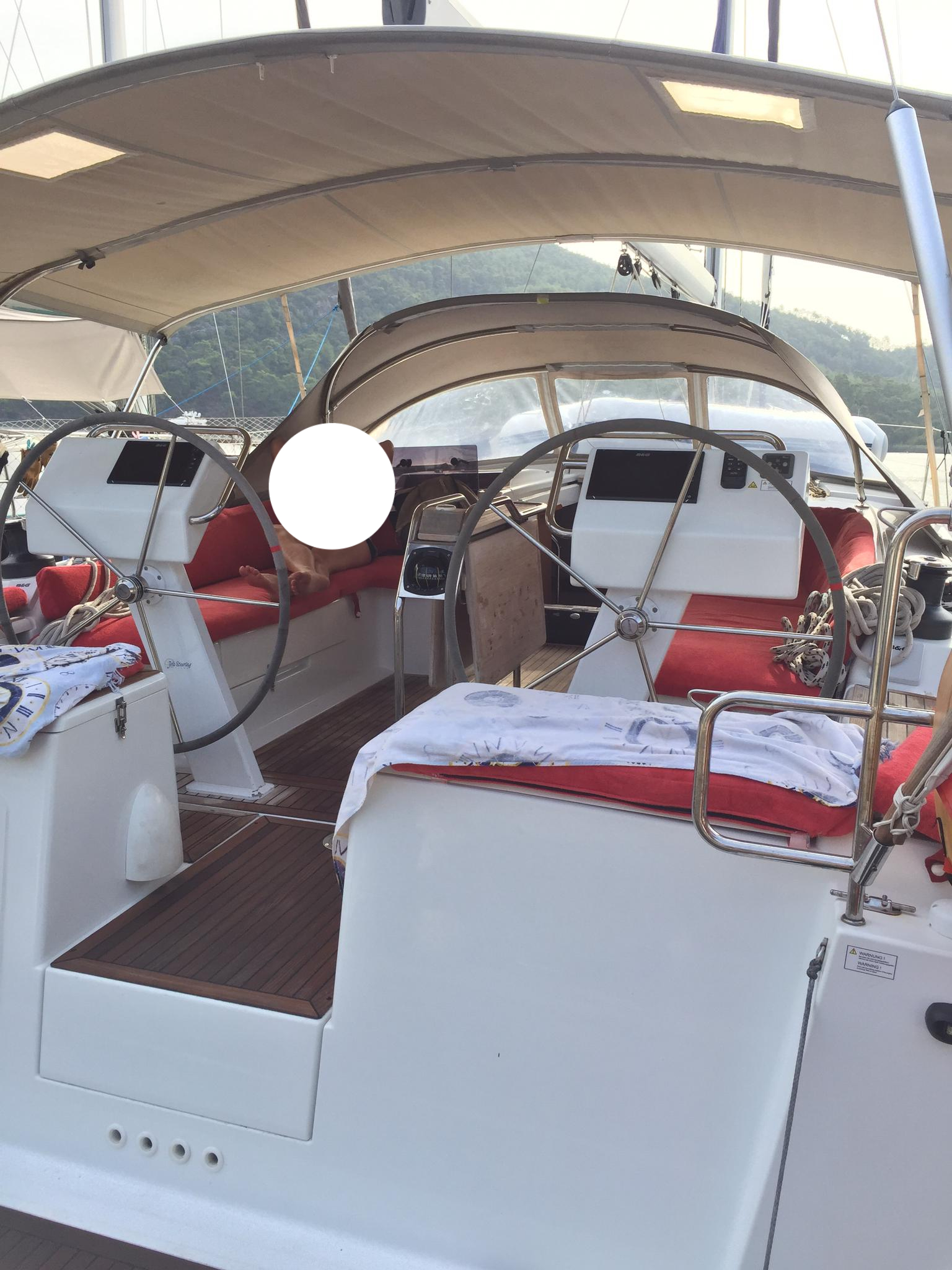 Outside Biminitop, Bootshaken, Cockpitdusche, Cockpitlautsprecher, Cockpitpolster, Cockpittisch, elektr. Ankerwinsch, Fender, Festmacherleinen, Schnorchelausrüstung, Sprayhood, Teak im Cockpit, Winschen