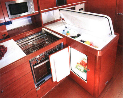 | Safety | Automatikwesten, Autopilot, Bordapotheke, Bugstrahlruder, Feuerlöscher, Kinderschwimmwesten, Navigationslichter, Notsignale, Rettungsinsel, UKW-Funk |