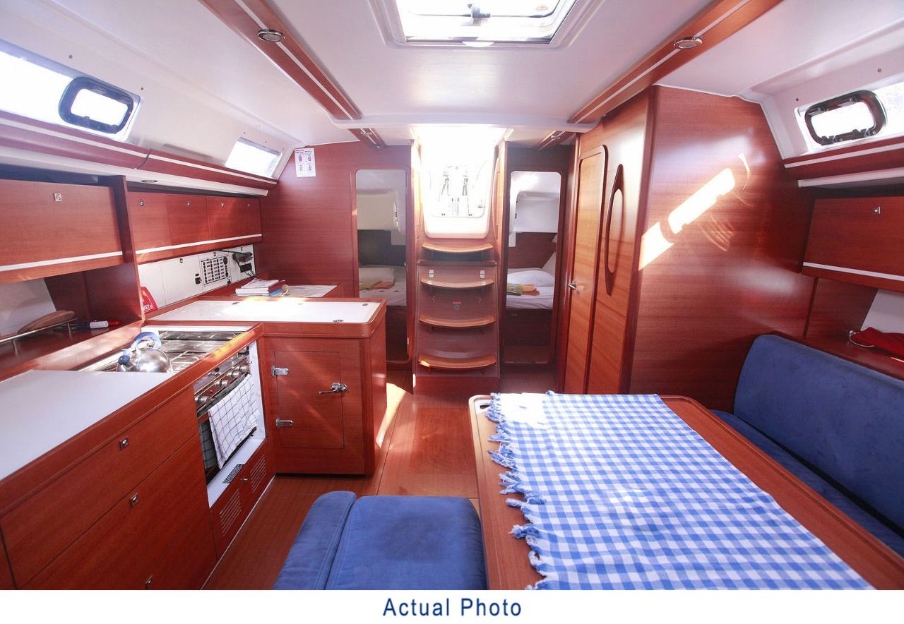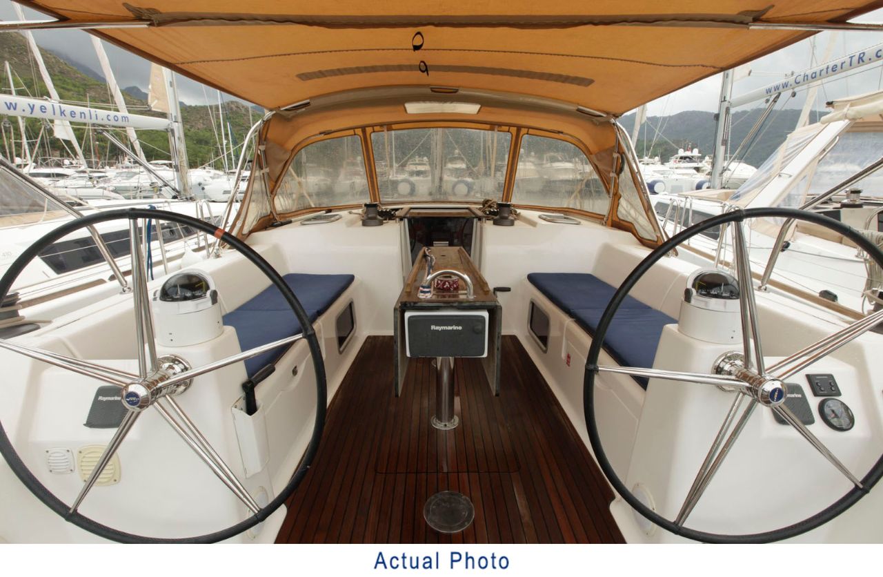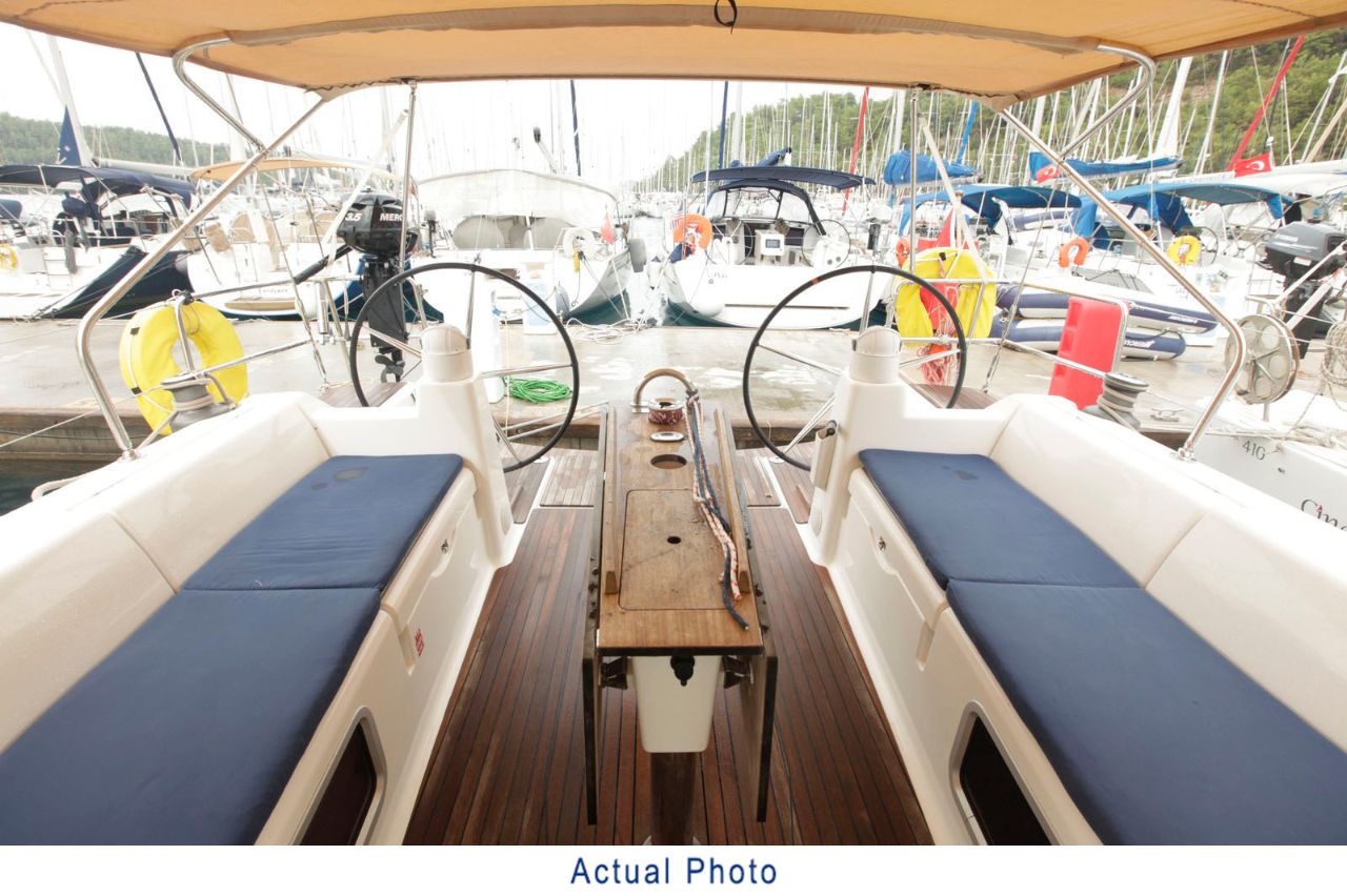 | Outside | Ankerwinsch, Badeplattform, Baro-/Hygro-/Thermometer, Biminitop, Cockpitdusche, Cockpitlautsprecher, Cockpitpolster, Faltpropeller, Gangway, Schnorchelausrüstung, Sprayhood, Teak im Cockpit |