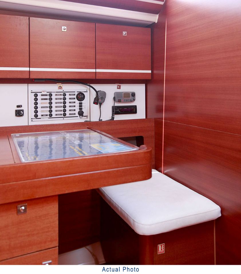 | Navigation | Barometer, elektr. Seekarten, GPS mit Farbkartenplotter im Cockpit, Hafenhandbücher, Seekarten, Sumlog, Thermometer, Tridata (Log, Echolot, Windm.) |