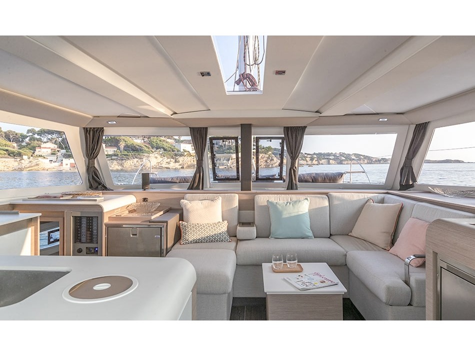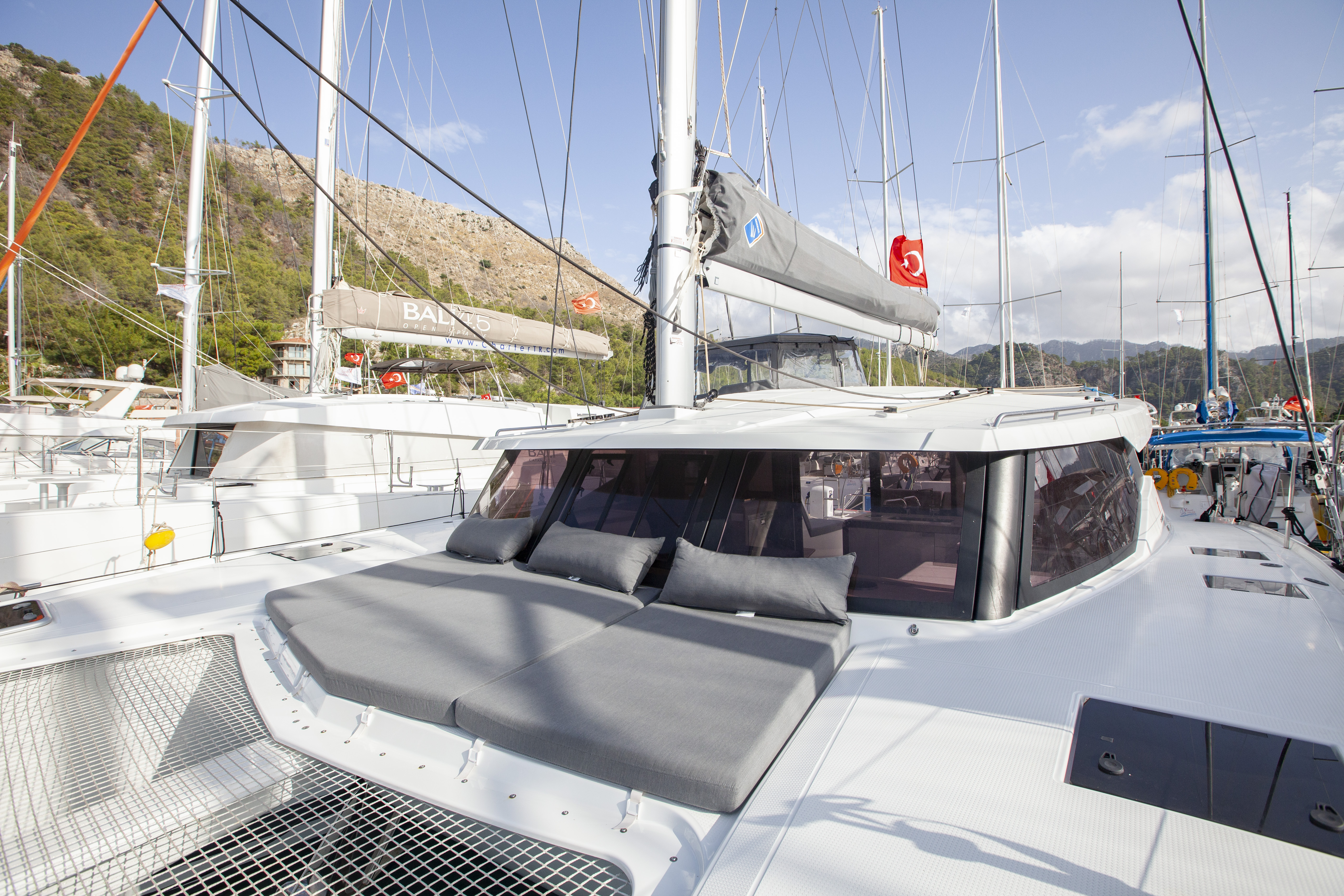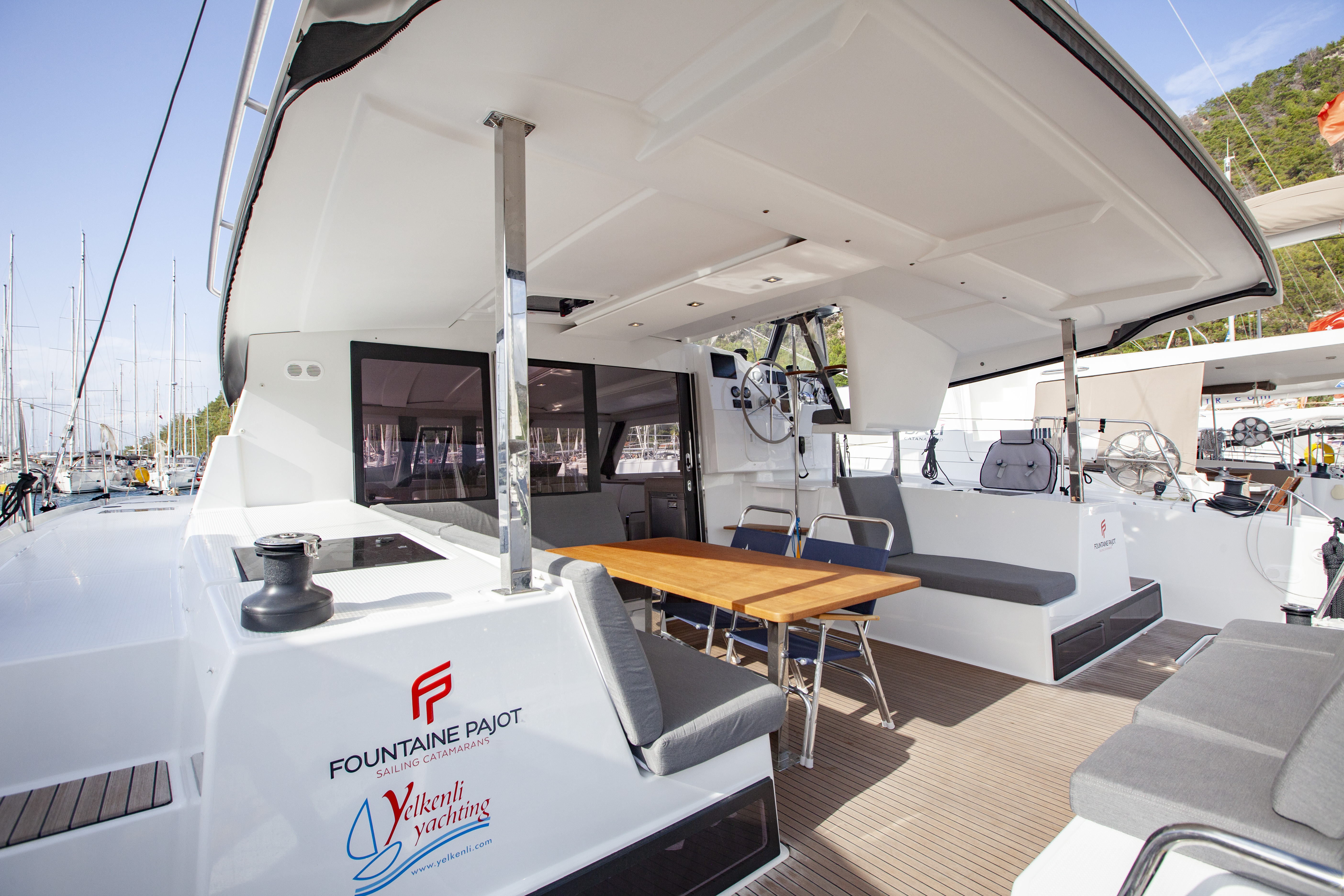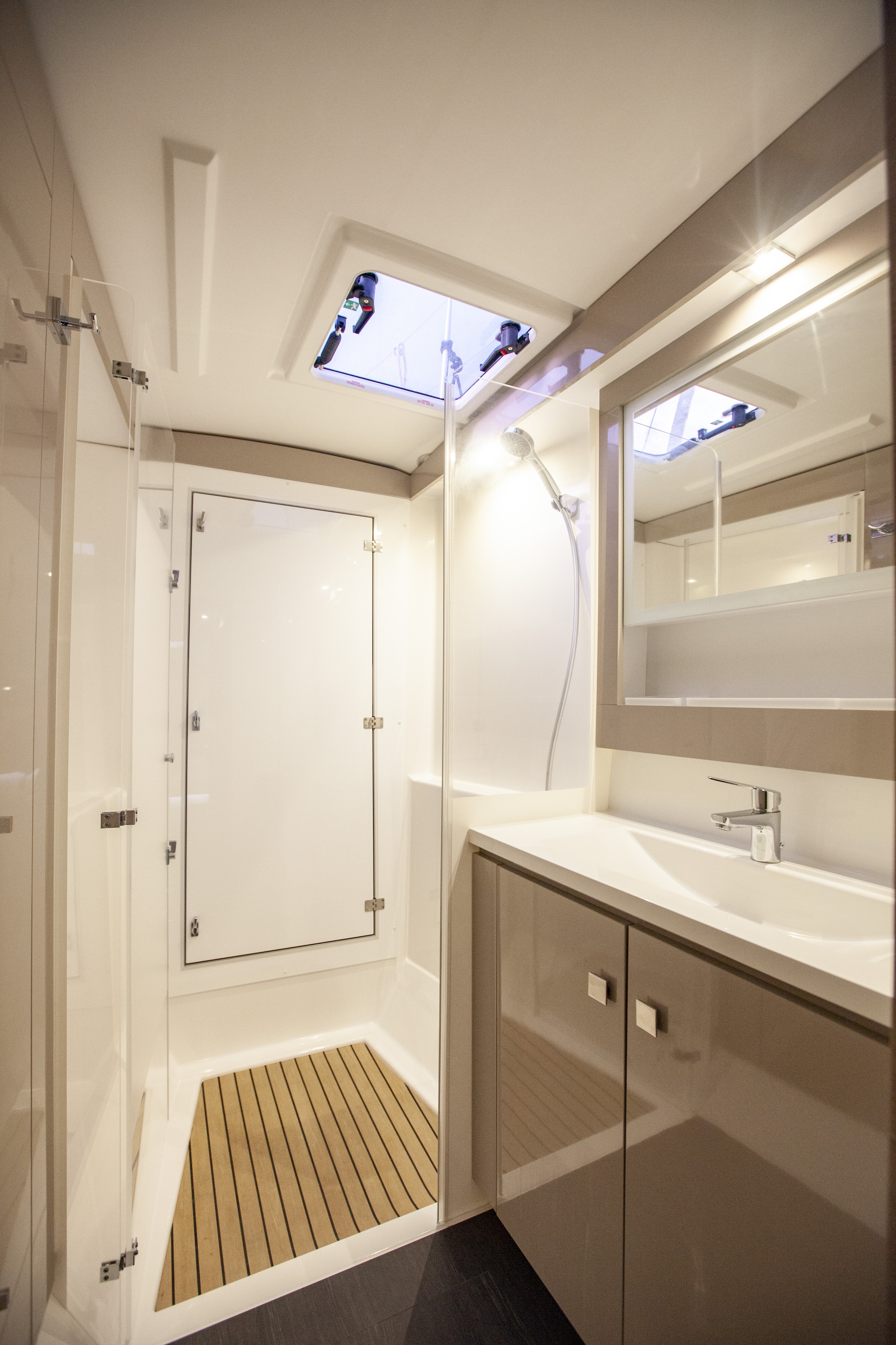 | Outside | Ankerkettenzähler, Ankerwinsch, Badeplattform, Baro-/Hygro-/Thermometer, Cockpitlautsprecher, Cockpitpolster, elektr. Winsch, Faltpropeller, Gangway, Hardtop, Schnorchelausrüstung, Solaranlage, Sprayhood, Teak im Cockpit |
