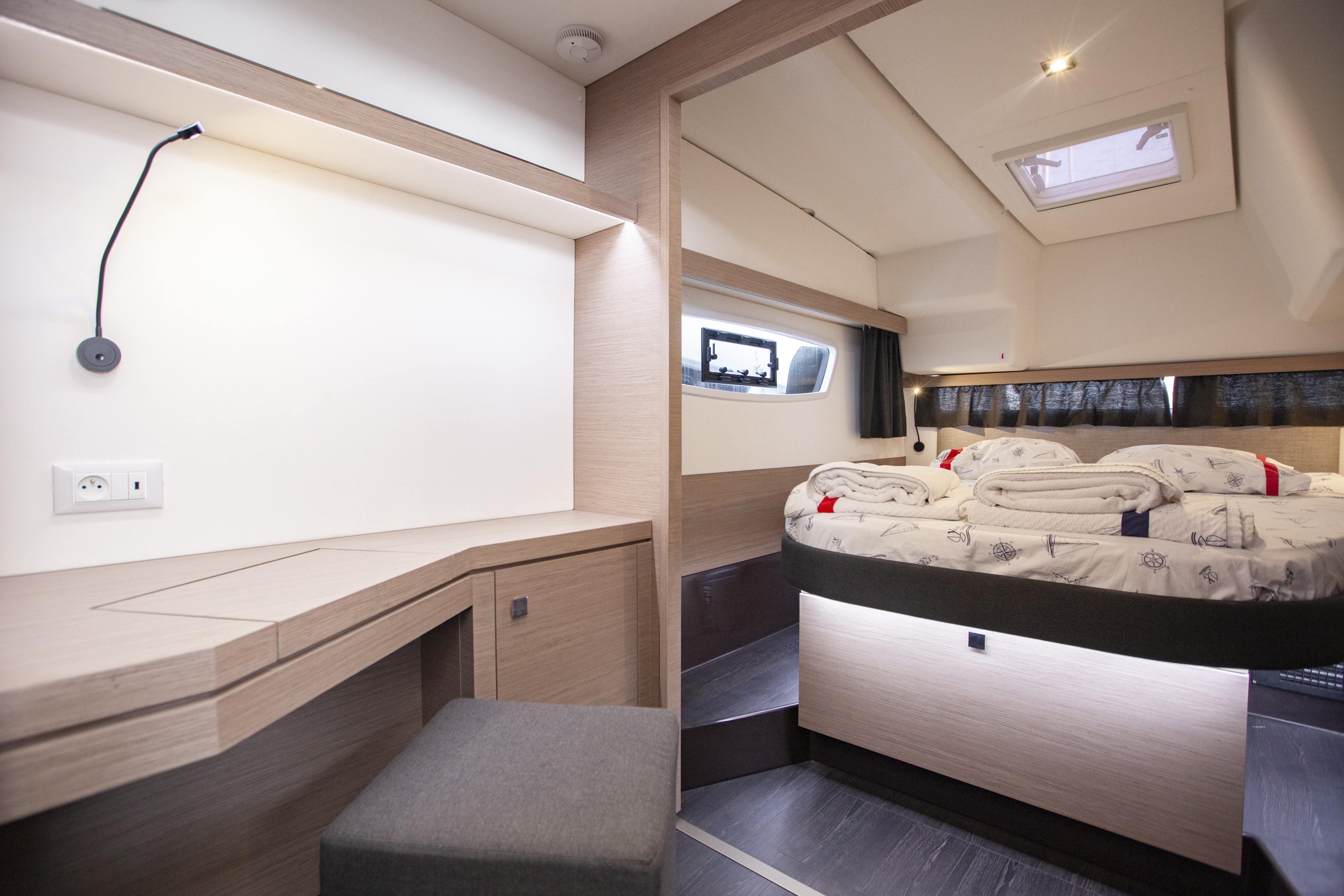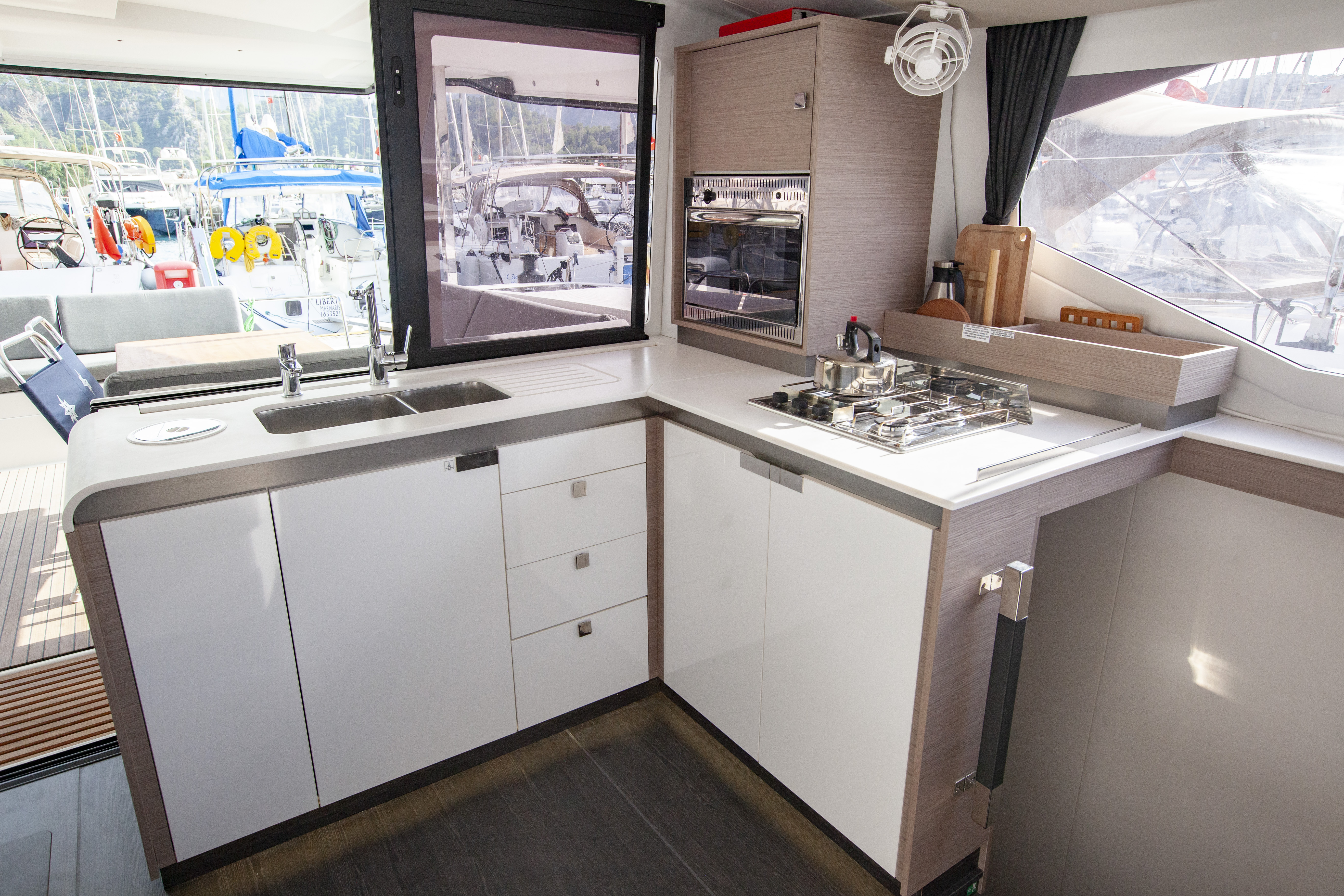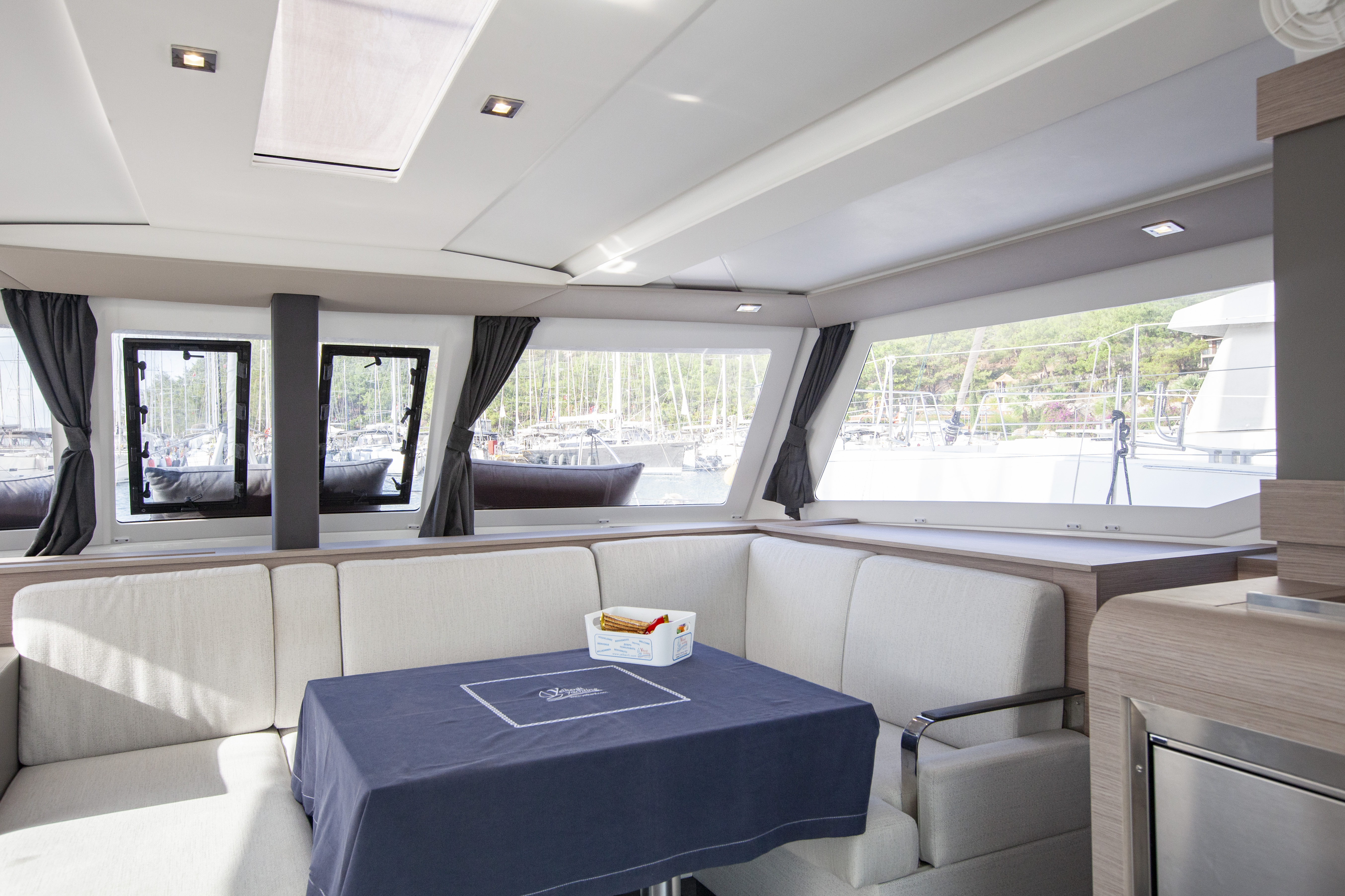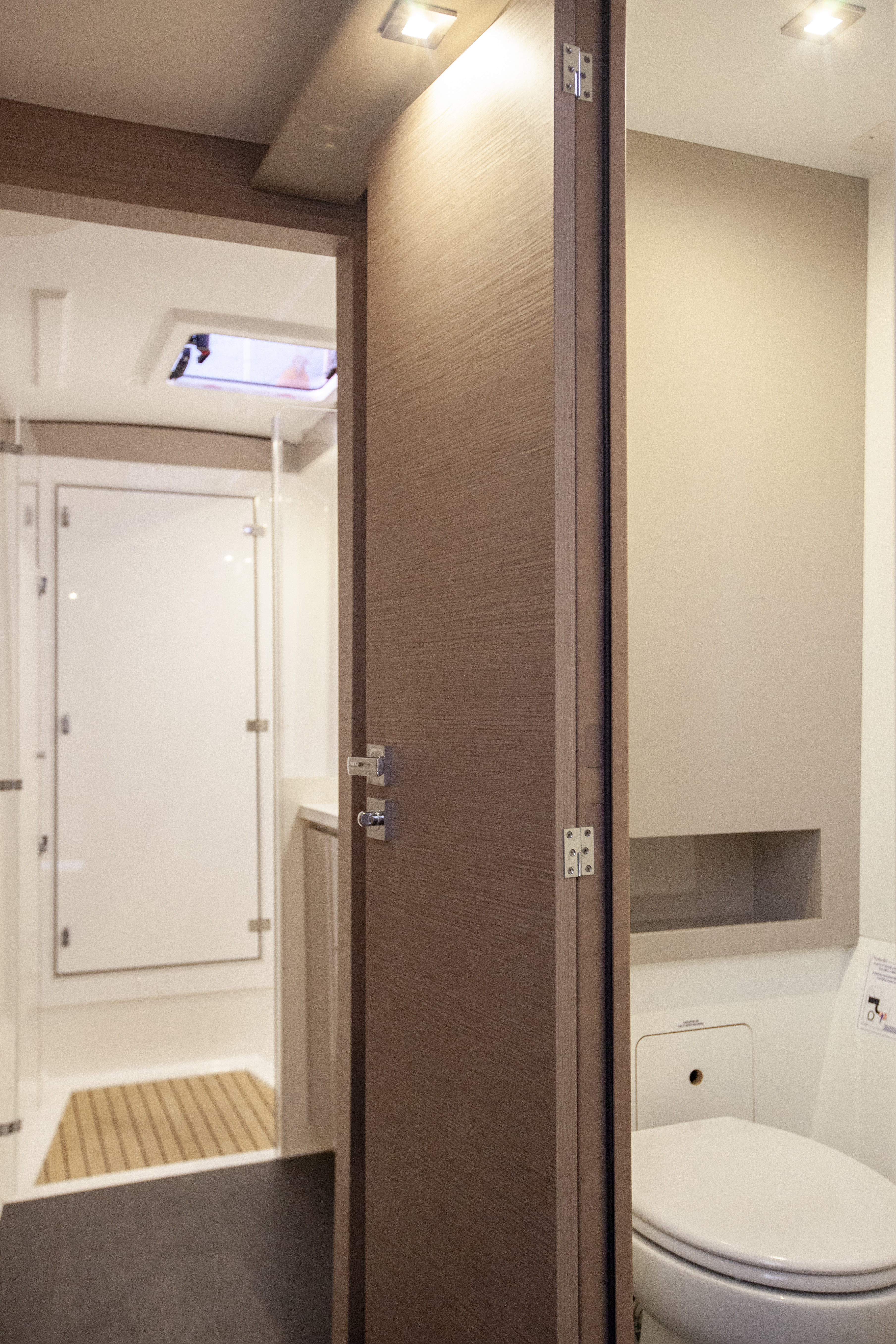 | Outside | Ankerkettenzähler, Ankerwinsch, Badeplattform, Baro-/Hygro-/Thermometer, Cockpitlautsprecher, Cockpitpolster, elektr. Winsch, Faltpropeller, Gangway, Hardtop, Schnorchelausrüstung, Solaranlage, Sprayhood, Teak im Cockpit |