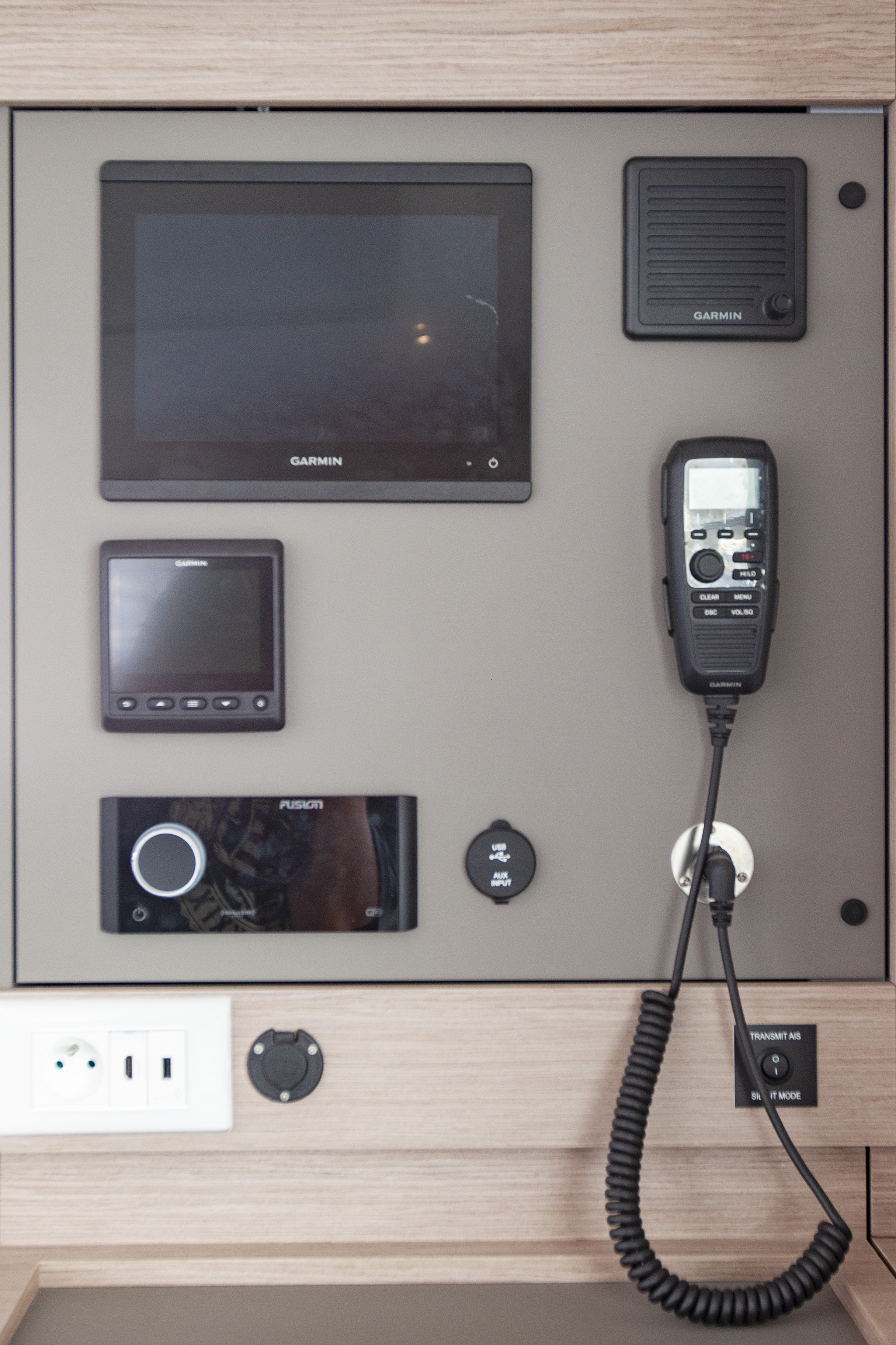 | Safety | Automatikwesten, Autopilot, Bordapotheke, Feuerlöscher, Kinderschwimmwesten, Navigationslichter, Notsignale, Rettungsinsel, UKW-Funk, Ultra Anker |