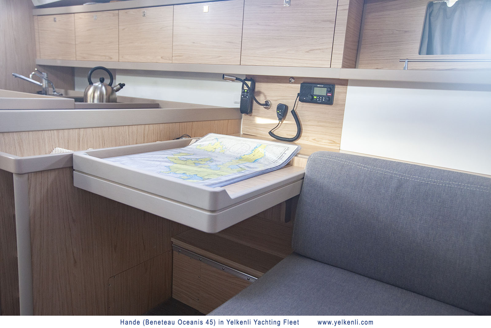 | Navigation | elektr. Seekarten, GPS mit Farbkartenplotter im Cockpit, Hafenhandbücher, Tridata (Log, Echolot, Windm.) |