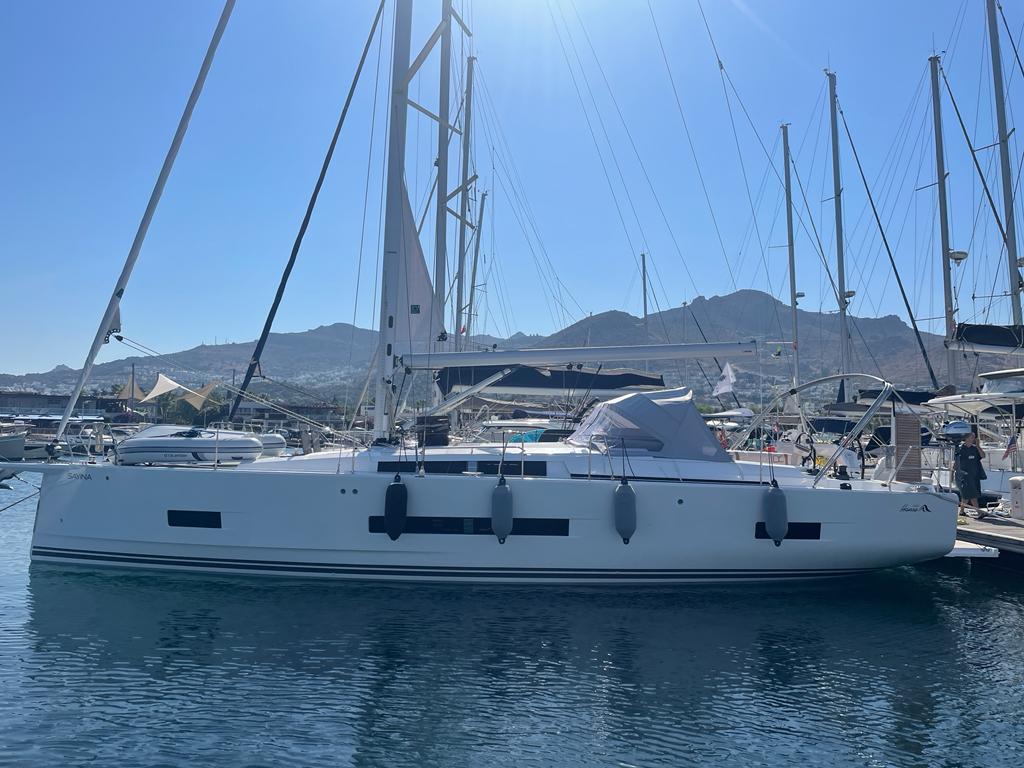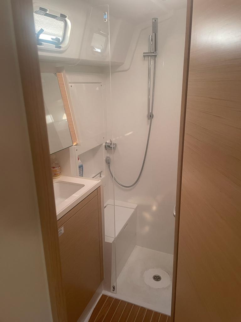 | Outside | Anker mit Kette, Ankerkettenzähler, Ankerwinsch, Badeleiter, Badeplattform, Biminitop, Cockpitlautsprecher, Cockpitpolster, Davits, elektr. Ankerwinsch, Faltpropeller, Fender, Kugelfender, Solaranlage, Teak im Cockpit, Teakdeck |