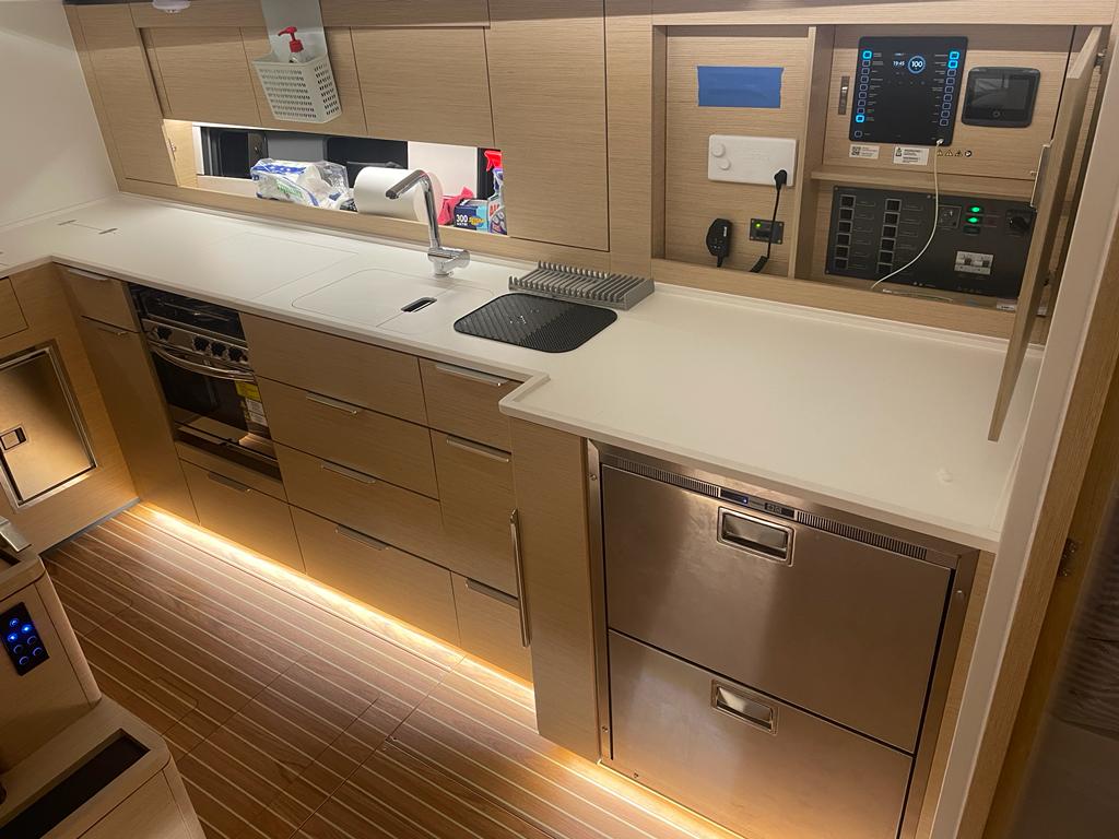 | Inside | Bluetooth Player, Fäkalientank, FUSION Sound System, Gefrierschrank, Heizung, Inverter 12V/220V, Klimaanlage (Landstrom), Kühlschrank, Lautsprecher im Salon, Salontisch absenkbar, Warmwasser, Waschmaschine, Watermaker, WC (elektr.) |