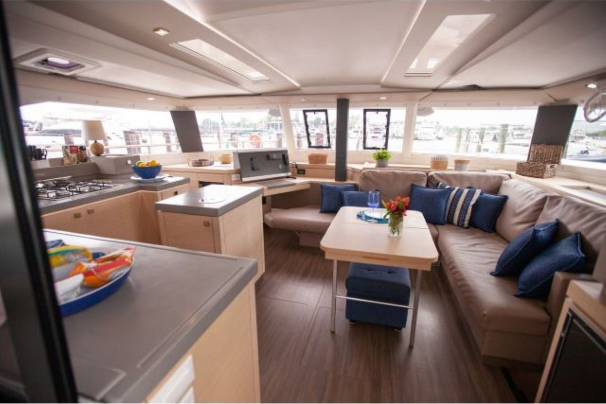 | Inside | 110 V Steckdose, Eisbox, Fäkalientank, Gasherd, Gefrierschrank, Generator, Inverter 12V/220V, Klimaanlage (ohne Landstrombedarf), Kühlschrank, Lautsprecher im Salon, Mikrowelle, Pantryausstattung, Radio, Salontisch absenkbar, TV, USB Steckdose, Watermaker, WC (elektr.) |