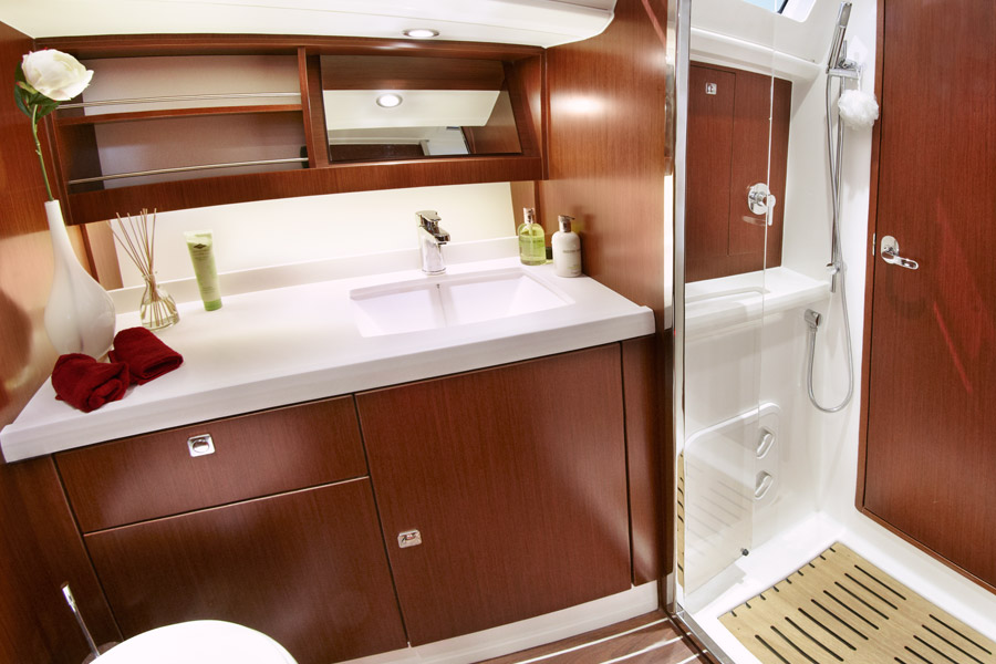 | Outside | 220 V-Landanschluss, Badeleiter, Cockpitdusche, Cockpitlautsprecher, Cockpitpolster, Cockpittisch, elektr. Winsch |