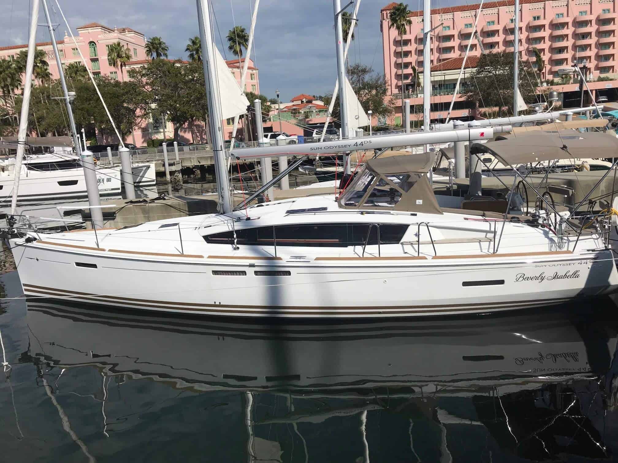 | Outside | Badeplattform, Biminitop, Cockpittisch, elektr. Ankerwinsch, Grill, Sprayhood, Teak im Cockpit |