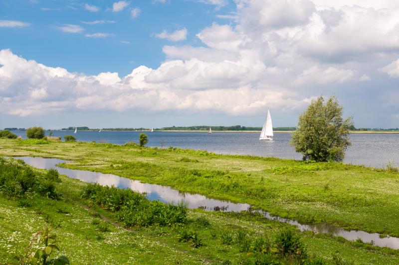 Über Schleusen gelangen Sie Richtung Westen in den süßwasserhaltigen Volkerak, der das Haringvliet mit dem Grevelingenmeer verbindet. Hier gibt es keine Gezeiten, sondern Ruhe und Entschleunigung durch die grüne, flache Landschaft mit Wasserrastplätzen.